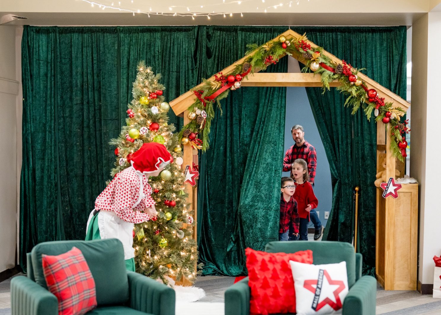 Eva thought she was spending a simple night at a hotel to go swimming. Instead, she was guided by Santa’s elves into a cozy Christmas cottage, complete with stockings, presents, festive characters and a kids’ movie nook. The biggest surprise of all? Her cousins from Virginia and South Dakota were in attendance, “magically” arriving to spend the weekend with her at the Mall – a wish Eva has been holding onto for months.